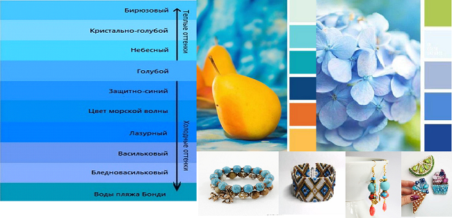 Удачно оттеняется голубой комбинацией белого и чёрного цвета, бежевыми и кремовыми тонами. Также эксперты называют такие цветовые решения, как совмещение небесных оттенков с: