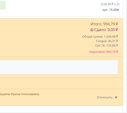 Nota, я не вижу строки скидка. Только в коментарии вес позиции