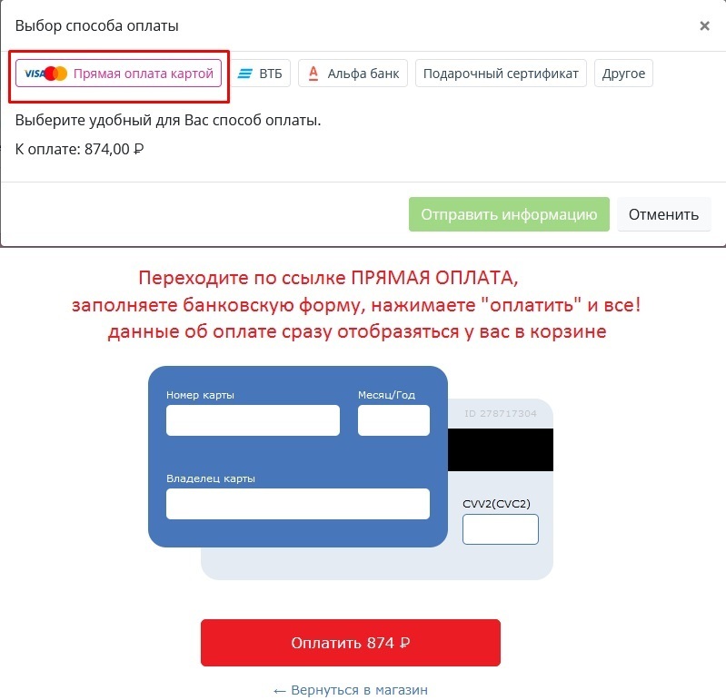 пож-ста воспользуйтесь Прямой оплатой с любой карты