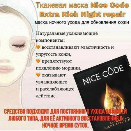 🔸Тканевая маска Nice Code Night repair эффективно увлажняет, способствует регенерации и восстановлению упругости кожи.