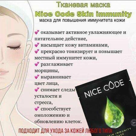 🔸Тканевая маска Nice Code Skin Immunity оказывает активное увлажняющее и питательное действие.