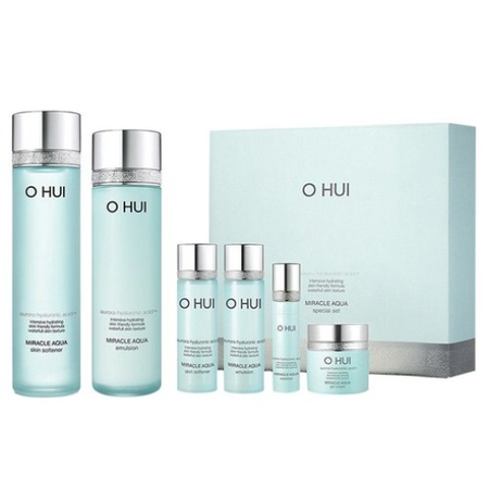 В комплект также входят миниверсии:1. O Hui Miracle Aqua Skin Softener - 20ml2. O Hui Miracle Aqua Emulsion - 20ml3. O Hui Miracle Aqua Cream - 7ml4. O Hui Miracle Aqua Essence - 3ml