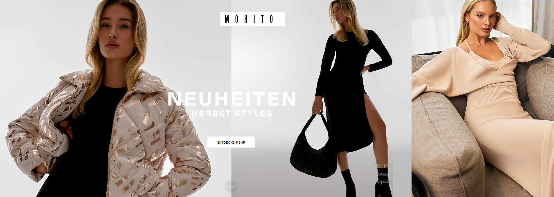 MOHITO – дизайнерская одежда для сильных и энергичных, но нежных и грациозных леди! Это стильная элегантная одежда для офиса и отдыха, дерзко ломающая стереотипы привычного делового скучного гардероба. Коллекции MOHITO всегда отвечают последним модным тенденциям. А основное преимущество бренда MOHITO – привлекательная цена и потрясающее качество!