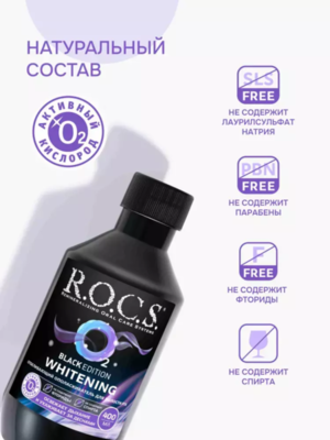 ROCS РОКС Ополаскиватель" Black Edition"отбеливающий, 400мл, шт