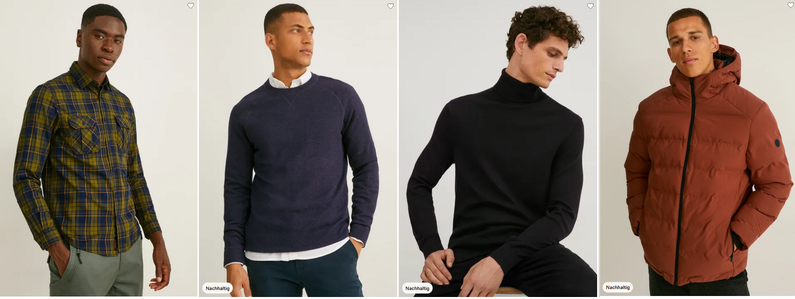 С&A — это разнообразная одежда для покупателей всех возрастов. Здесь каждый, от мала до велика, сможет выбрать одежду по своему вкусу, индивидуальности и настроению. Роскошные вечерние наряды и комфортная одежда для отдыха, классические костюмы для работы в офисе и одежда для малышей — все это есть в C&A по чрезвычайно демократичным ценам.