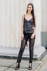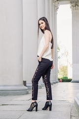 Брюки MAEVA (с кружевной вставкой и шелковым пояском лентой)=880 руб!