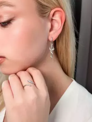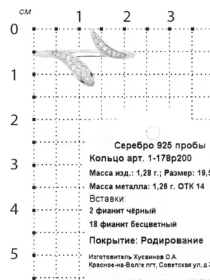 Кольцо-Змея из серебра с фианитами родированное 925 пробы 1-178р200