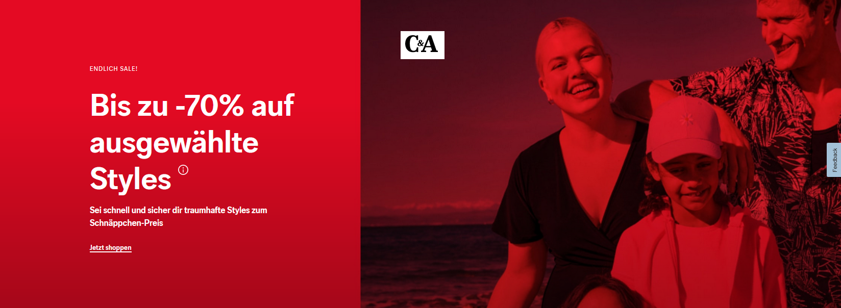 С&A — это разнообразная одежда для покупателей всех возрастов. Здесь каждый, от мала до велика, сможет выбрать одежду по своему вкусу, индивидуальности и настроению. Роскошные вечерние наряды и комфортная одежда для отдыха, классические костюмы для работы в офисе и одежда для малышей — все это есть в C&A по чрезвычайно демократичным ценам.