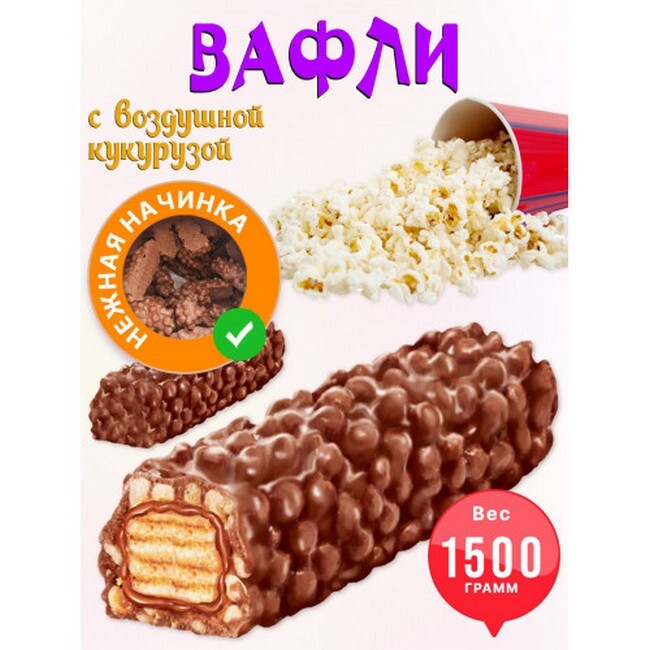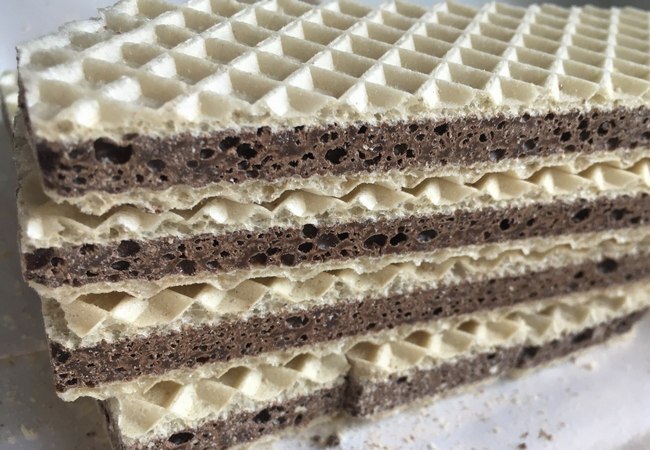 Вафельный сэндвич с шоколадной начинкойХрустящие вафли с щедрой прослойкой воздушной шоколадной глазури типа Твист