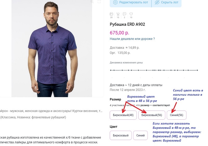 Как заказать нужный цвет и размер: