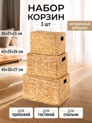 Коробки, корзины, кофры для хранения и организации пространства плетеные