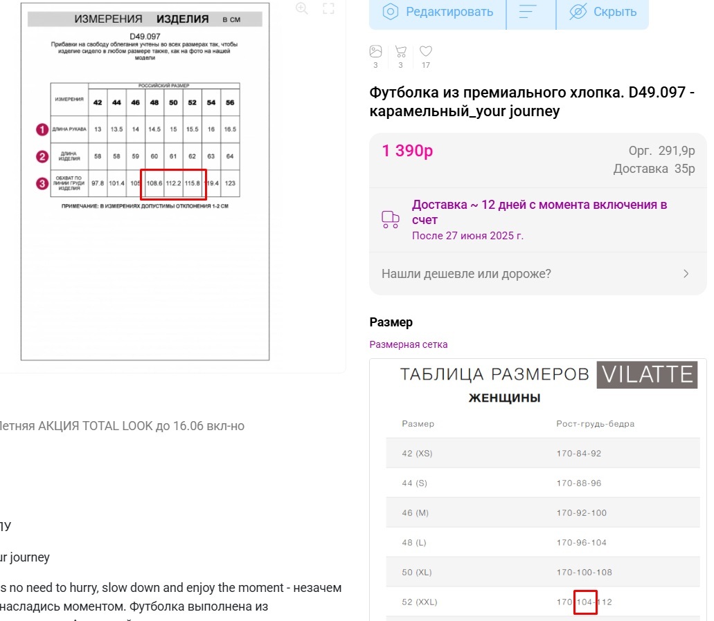 Geneva, здравствуйте. Я никак не могу сопоставить размерную сетку и замеры изделия . Если ОГ 104 , по размерной сетке это 52 размер , по замерам 44 . Помогите пожалуйста с выбором размера