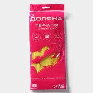 Перчатки хозяйственные латексные Доляна, 2 пары, размер S, 28 г, ХБ напыление, цвет жёлтый