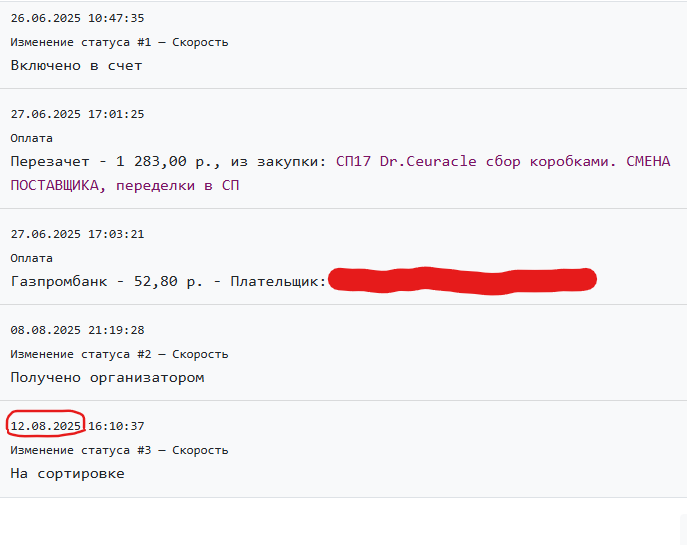 Вот я дура! Почти год ждала свою косметику и, поняв, что не дождусь, решила пойти навстречу организатору и сделала перезачет в другой закупке (СП356 МОЮЩАЯ ХИМИЯ PRO-BRITE, цены ниже, скорость выше!), т.к. там был обещан быстрый выкуп (наивная).