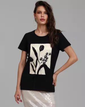 СП24 SAHAR - сетка, авторский принт, броши цветы
