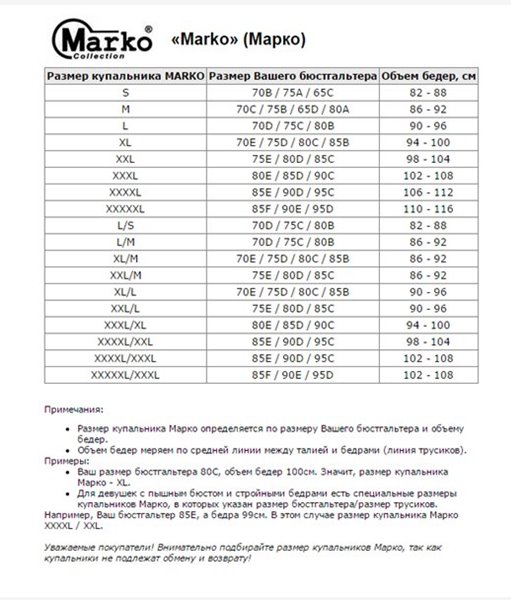 Селена, скажите Marko SELENA M-190 купальник какие есть размеры? и где можно посмотреть соответствие размерности? XI это 48-50?